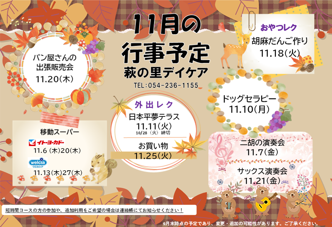 11月もたくさんのイベントを計画しておりますので是非ご参加下さい。